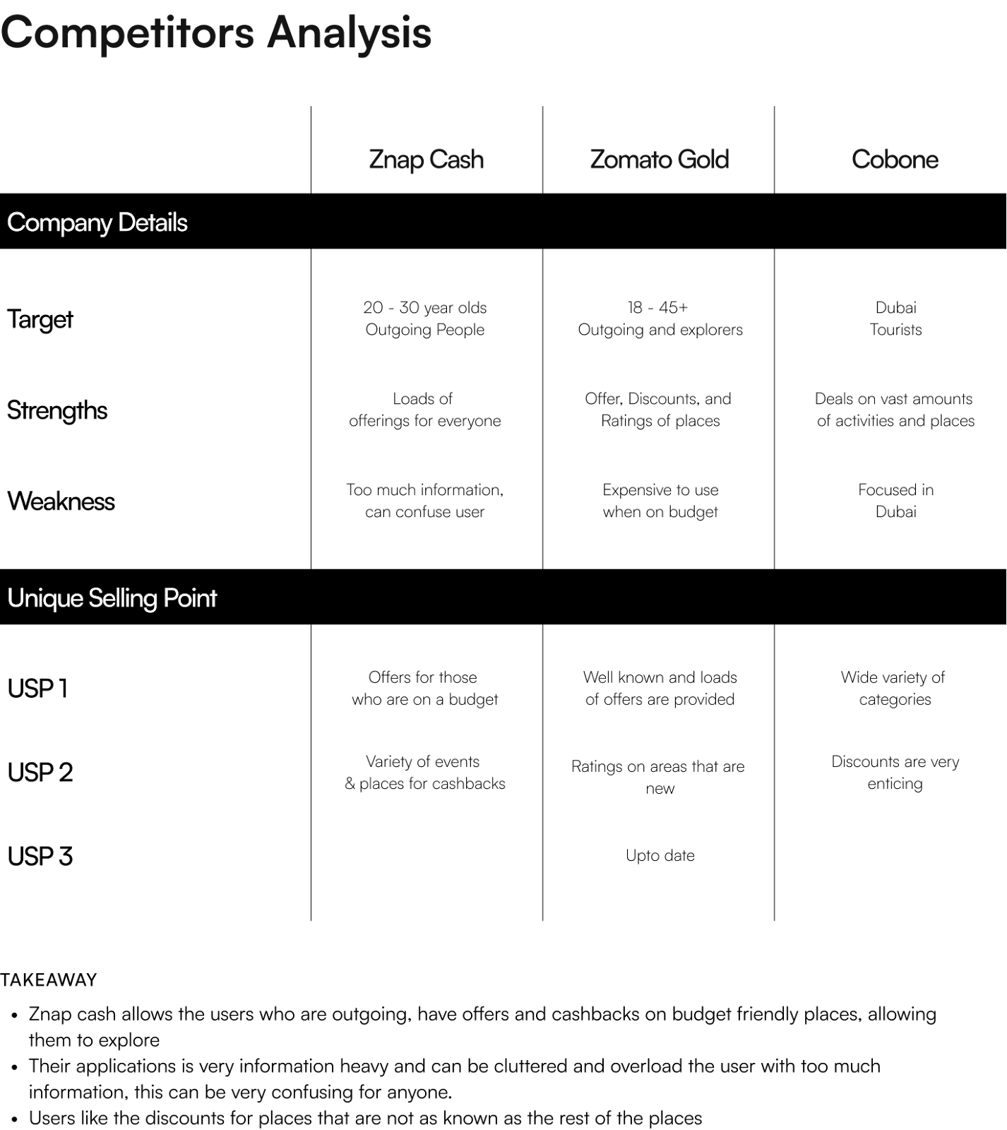 During the competitive research phase for Znap Cash - UAE's top Rewards App, we encountered multiple competitors with similar product offerings and features aimed at the same age demographic.
